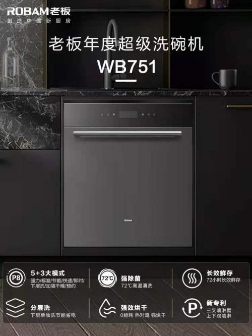 通过不断深入消费者内部,探索消费者痛点,不断加大科研的投入,由其打造的老板强力洗洗碗机系列产品在各项性能均位于行业领先水平,尤其是在水效方面,更是行业领先地位。如WB755、WB735、WB751等均率先通过水效一级测试,在水效指数(耗水水平)、能效指数(耗电水平)、干燥指标值、清洁指数标值方面都给消费者创造了更加便捷的生活体验感,同时也做到了行业节能高效的典范。此外,产品容量升级为13套更大容量,也诠释了更优空间的标准高度,为老板洗碗机赋能更多产品优势。