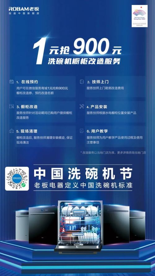 此次,老板电器中国洗碗机节已经活动的下半场,为了更好地推动洗碗机走进千家万户,为消费者实现美好生活而提供助力。活动期间围绕“更好产品、更优服务、更多福利”三个维度,老板电器活动期间实行100天免费试用、免费上门设计、橱柜升级改造、无忧售后服务4重钜惠政策;并在4月1日-5月31日期间,购买老板洗碗机WB755赠送价值700元的全年洗涤套餐,其中包含:1000g洗碗粉8瓶、2000g软水盐4袋、500g漂洗剂8瓶等重磅福利,通过专业的洗涤产品搭配功能硬核的强力洗洗碗机系列,为广大消费者共造1+1>2的洁净、节水效果,为消费者提供绝佳的购物体验。