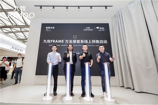 发布会上,九牧电商零售中心总经理赵强和京东零售居家事业部家装建材自营部总经理杨鑫共同开启“Frame方”套系京东线上预售直播环节,让更多消费者率先体验九牧品质的国潮卫浴生活。