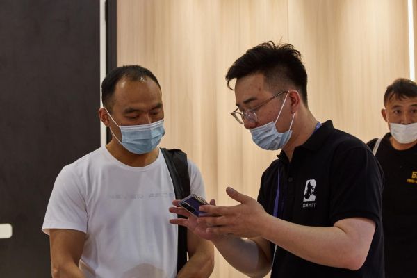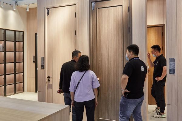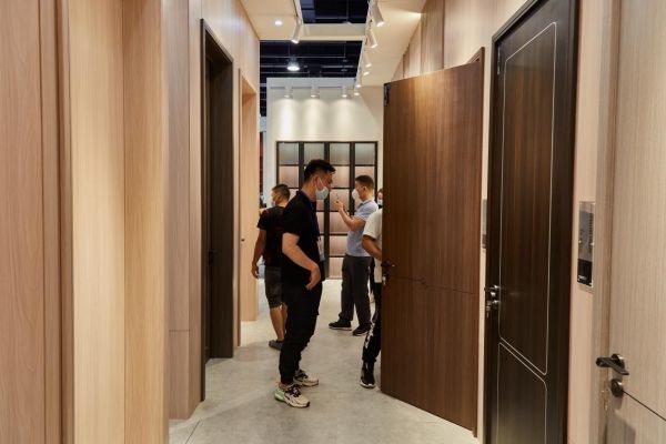 5月26日是本届门博会的第一天,戴好口罩、拿出健康码,跟随人流从东区5号口进入会展现场。会场人流如潮,位于永康国际会展中心B馆B3T06区的全简木门以简单而醒目的“全简木门,九层结构,双面防裂”吸引了一批批客商和终端消费者步入展台,向工作人员询问产品详情、经销政策。