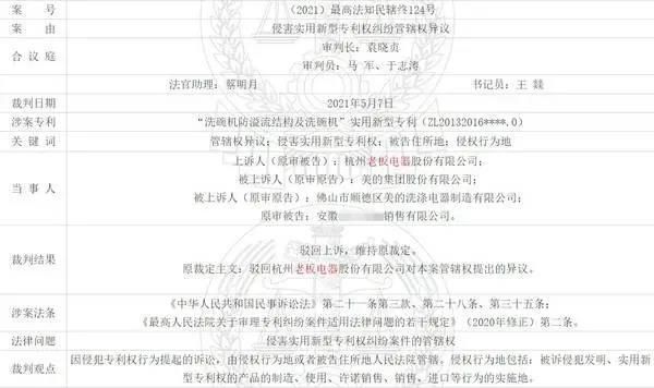 最高法近日公布的一份民事裁定书,让老板电器涉嫌侵犯美的集团专利的案件浮出水面。案件还要回到今年年初,根据最高法民事裁定书中的内容,美的公司、佛山美的洗涤公司向原审法院――安徽省合肥市中级人民法院提起诉讼,原审法院于2021年1月4日立案受理。