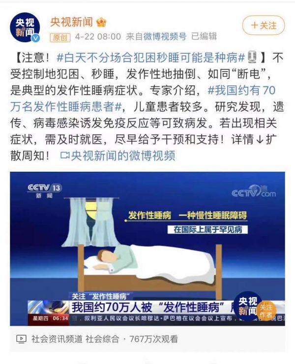 近日,央视新闻报道了一则关于“发作性睡病”现象,所谓发作性睡病症状是指不受控制地犯困、秒睡、发作性抽倒,如同“断电”。而这个病在我国有着70万人的庞大基数。