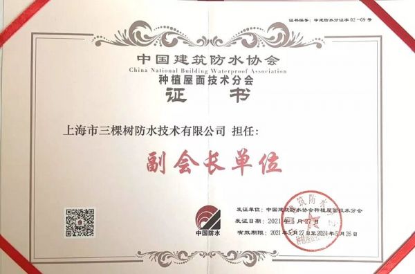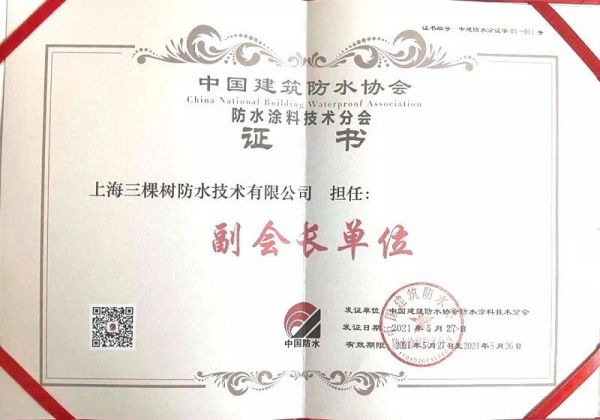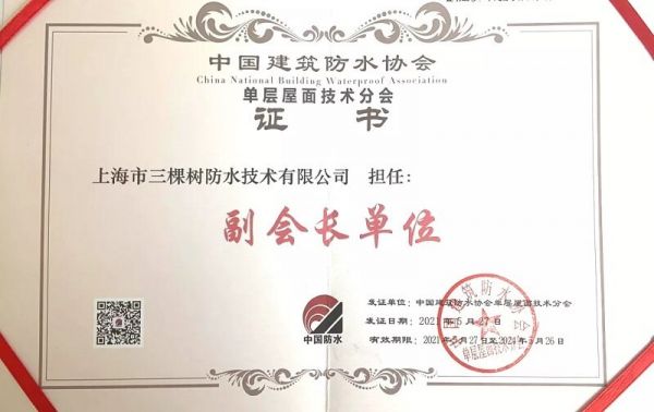 三棵树防水获选中国建筑防水协会三大分会副会长单位