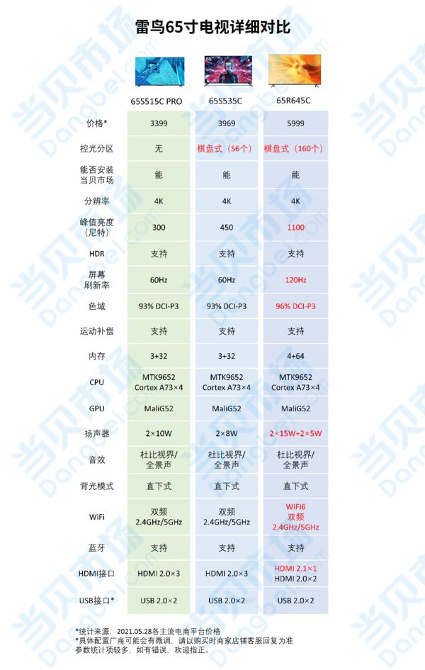 当然,雷鸟65S535C和65S515C-PRO也是极具性价比的选择。大家可以根据自己的需求和预算进行选购。