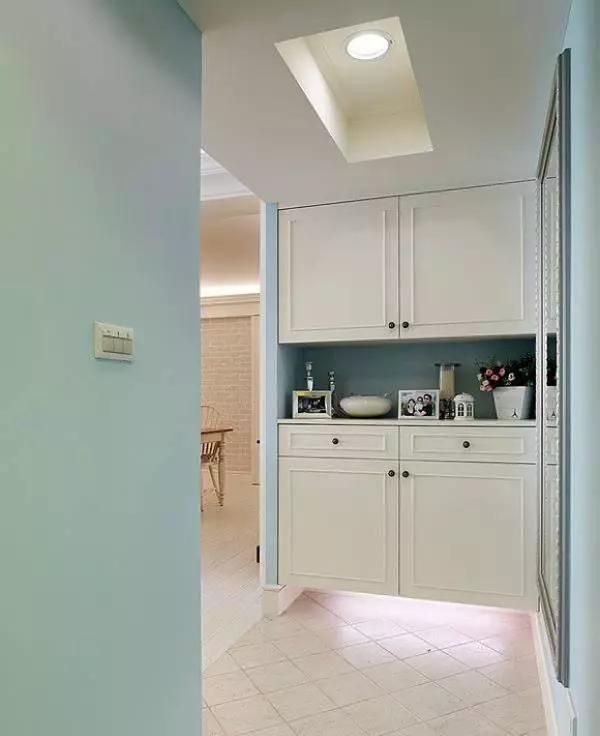 6、玄关柜,在柜子中间可以留出空,方便回家时放包包和钥匙等物品,如下图: