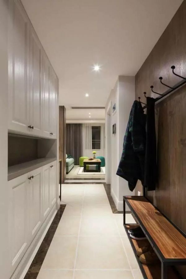 7、玄关处位置够大的话也可以做些挂钩,这样方便于挂外套,出门时也不会忘记穿上。