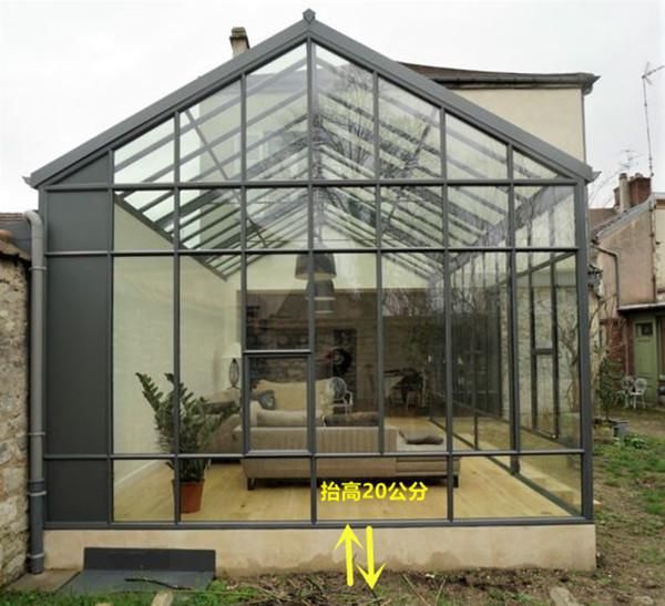 第三,抬高20公分,阳光房的高度正好和室内的高度一致,这样子,老人或者小孩,从室内进入阳光房内就可以更加方便,不至于因为高低的问题,被绊倒什么的。