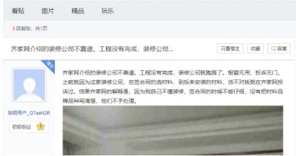 事实上,在多年的互联网家装行业发展过程中,装修质量差、消费者隐私泄露、售后服务缺失、怠慢消费者投诉等互联网家装平台投诉问题屡见不鲜。这些问题并不是某一个平台所独有的,不少互联网家装平台都有着类似的问题。