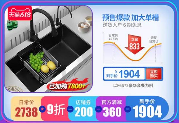 此次“6.18,年中购物嗨”法派斯推F6S72系列产品,是法派斯的畅销产品之一,自上市以来一直备受消费者的青睐。更多年轻家庭的首选,为中国消费者营造了一个艺术感十足的厨房空间。法派斯石英石水槽在行业内是有口皆碑的,72cm的长度更适合中国家庭,进口石英原石,让水槽具有极强的耐磨性能。黄金R角、流线型外观的各类细节都能体现出专业设计团队的匠心之作。不止于颜值更是厨房的好帮手,有它可以给您节省更多时间,让厨房洁净变得更简单。F6S72原套餐价2738元,6.18活动到手价只要1904元,狂降834元。