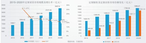 我国定制家居行业具有巨大的市场发展潜力。据艾瑞咨询统计,我国家具产业占全球家具生产量的39%,远超第二大国美国18个百分点。其中,我国特有的定制家居市场份额正在不断扩大。2020年我国定制家居市场规模达到3607.6亿元,增长率为16.09%。