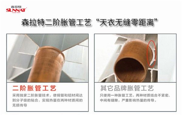 而铜铝暖气片的散热性能会更强,特别是森拉特铜铝复合暖气片,选用了99.99%的无氧紫铜管和6063航空级原生钛镁铝,更是推出了独家的3D二阶胀管技术,让紫铜管和铝材达到了分子级贴合,结构紧密,聚能腔体结合八翼翅片技术,实现较传统的工艺散热效果提升了15%,在独立供暖区域可以更快升温,为孩子创造愉悦的生活和玩乐空间。
