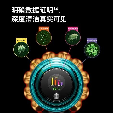 同时,为了让用户对“吸得干净”有更直观的感知,全新的压电式声学传感器技术,可以对吸入灰尘进行每秒15,000次的大小测量和数量统计,并结合研发团队耗时五年倾心打造的算法,能够实时分类显示吸入灰尘数量,让清洁的“玄学”变成了LCD屏幕上实实在在的数字。