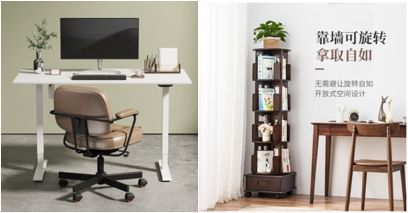 松能电动升降桌(左)、乐系360°多功能书架(右)