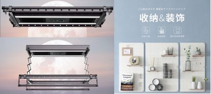 四季沐歌德尔菲系列全嵌入式电动晾衣架(左)、美之高墙面置物架(右)
