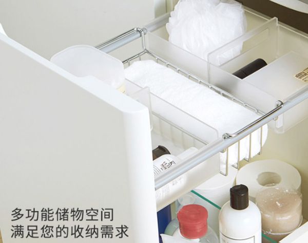 不同于部分浴室柜,柜体内部虽然空间宽敞,但利用率不高。而科勒 KOHLER 浴室柜K-45764T-S希雅维浴室柜内部采用双层竖抽,上层内置储物盒,下层多功能分隔,抽拉便捷,拿取方便。同时长层储物盒采用脱卸式设计,可以拿出放置在台盆周边,门内侧同样固定有亚克力置物盒,同样方便拆卸,极为灵活。如此一来,整个浴室柜空间实现高效利用。