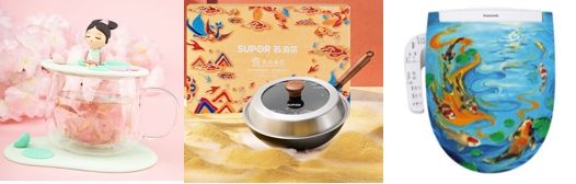 故宫鱼戏夏荷玻璃杯 苏泊尔敦煌系列联名炒锅 松下“王的手创”联名智能马桶盖