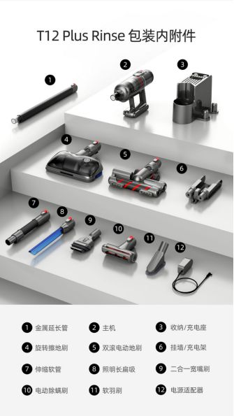 在众多配件中,要特别提及下双滚电动地刷,该刷头将地板刷与地毯刷集成在一起,各种地面材质均可用其清洁,是一款同样高效的清洁刷头。小狗T12 Plus Rinse擦地吸尘器可以满足多元化的家居场景,可以说是一套工具搞定所有。这一点,也是钟丽缇特别推荐的地方。