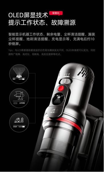 而且,这款吸尘器配合主控板双MCU处理器,实现整机额定功率585W,整机吸入功率高达185AW,在现阶段国内无线手持吸尘器市场中,稳站行业吸力第一梯队。