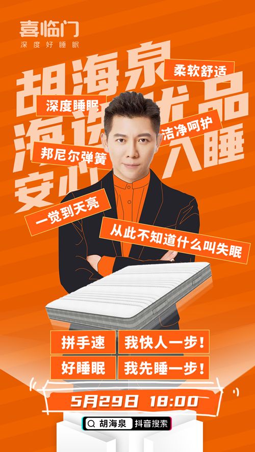 “喜气临门,海你来看”,5月29日晚,喜临门“做客”胡海泉的抖音直播间,再次打出“名人直播+优质产品+巨大折扣”的营销组合拳。
