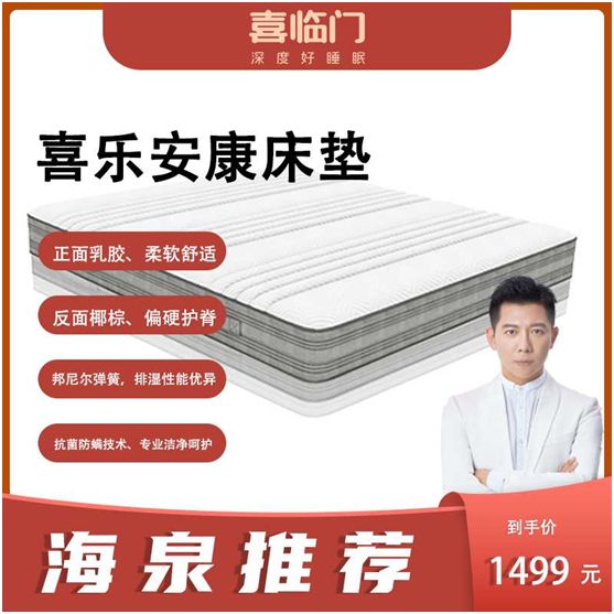 这次,喜临门为直播间粉丝优中择优,带来的是物美、价廉、适用于不同人群需求的尖货产品——喜乐安康乳胶护脊独立弹簧抗菌床垫。