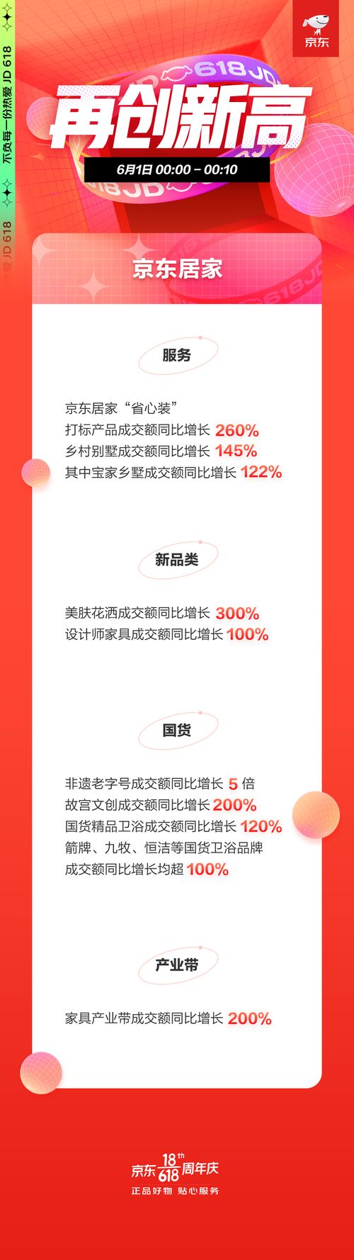 对于家有装修大计或需要添置换新各类家居用品的消费者来说,618绝对是不容错过的盛事。这个618,京东居家联合众多知名品牌,以海量正品好物和贴心服务,引爆一场从装修改造到夏季焕新的消费狂潮,6月1日开场10分钟,京东居家成交额同比增长120%,开门红再创新高。