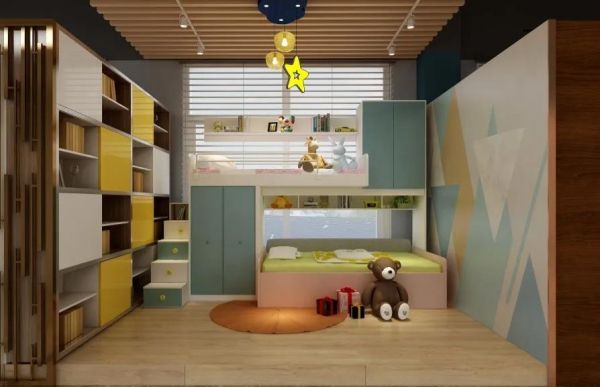 在儿童房的色彩选择上,一般会给小朋友选择亮丽的,能带给孩子幸福感、愉悦感的颜色,保留孩子的童趣与天真。