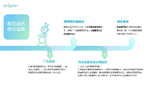 广州数讯营销策划有限公司作为泛家居行业全链路生态营销一体化服务商,公司成立于2014年,聚焦于家居家电行业,深耕家居市场,聚焦于字节跳动系产品经营,深谙流量获取规划,同时专注于行业电商营销,从流量经营到短视频创作生产,从直播电商到主播人才孵化及对B端内容直播电商培训,从广告经营场深入到兴趣直播电商生意经营场,每年均迎合市场需求进行踏实快速的迭代成长。