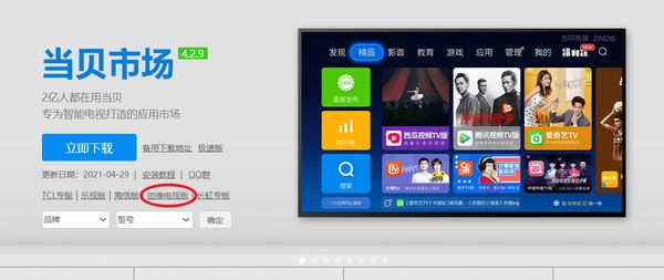 电脑上打开当贝市场官网,选择创维电视版下载,并复制到U盘