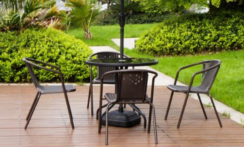 如果家庭成员不擅长打理花草,也不愿意种菜,可以把庭院打造成客厅休闲的延展区域,配置些户外家具,搭配简单的植被、石头,设一方水景,布置成一个露天的待客休闲场地。