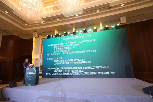 韩兵康副教授为我们回顾了防水技术的变迁,分享了一些防水事故处理的案例,其中特别提到1998年同济微晶修复的一个地下工程。而后为我们介绍了深圳航站楼超长结构无缝施工技术,并对同济微晶建筑防水防潮科技中心研发机制提出了的一些建设展望。