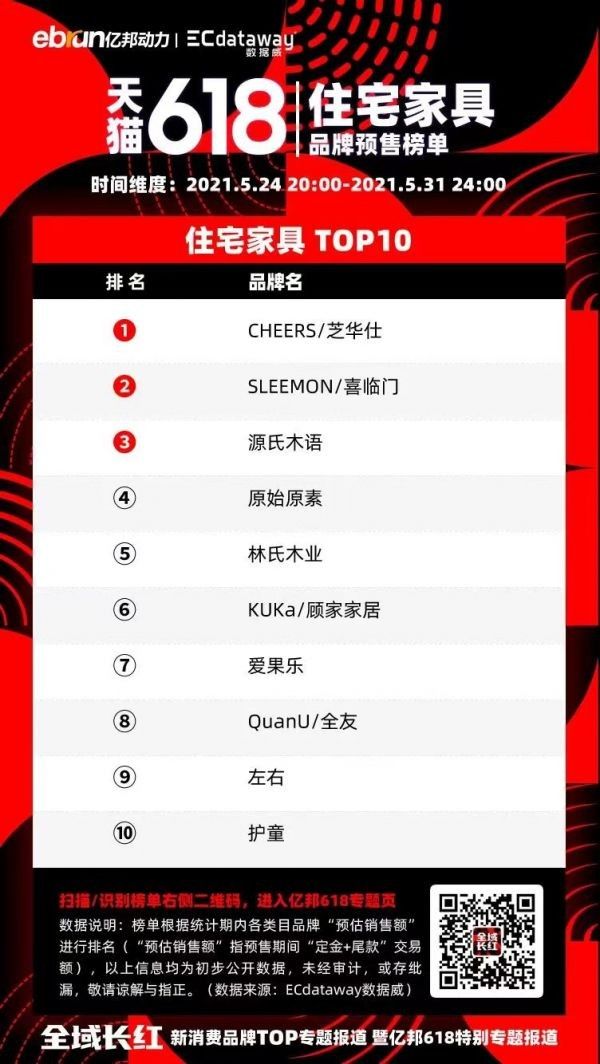 据亿邦动力和数据威发布的数据显示,618预售阶段,截止5月31日24:00,芝华仕在天猫618住宅家具品牌预售榜单位列第一。芝华仕凭借舒适源于科技的产品理念,亲民优惠政策以及切实的服务保障等诸多优势,为天猫618首波预售交上满意答卷。