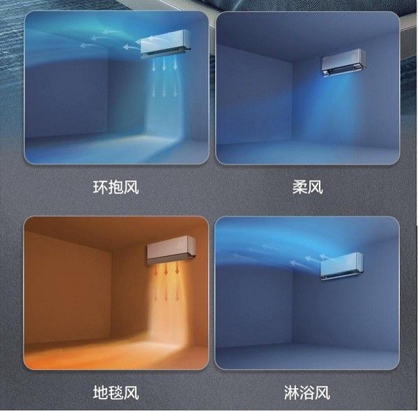 TCL卧室新风空调通过14 片可开合柔风叶片, 854个柔风微孔组成柔风系统,将生硬冷风通过微孔打散,吹出柔和、舒适的软风;智慧柔风2.0技术,一键切换实现柔风、淋浴风、地毯风、环抱风四种舒适送风方式,满足一年四季全家人的需求。环抱风,让新风全方位环抱用户;淋浴风,适合夏天更加清凉;地毯风,避免冬天“寒从脚下生”。配合360°运动导风板,让送风范围更广,温度分布更均匀。