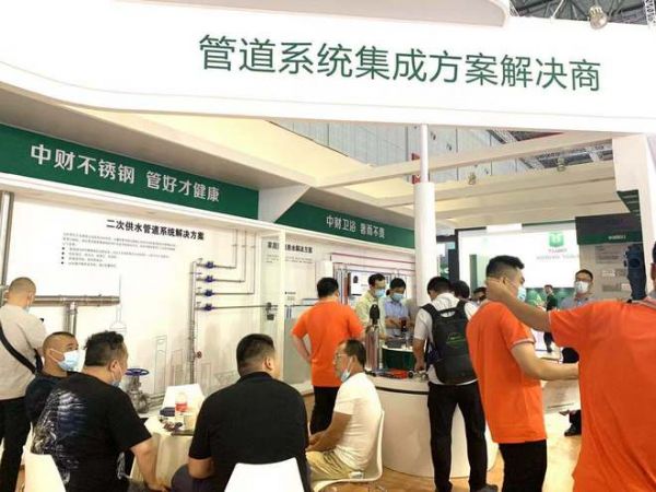 【陆海东】:今年是中财不锈钢第一次带队参展,以前是以塑料管道为主,从前年开始新增了金属管道类产品。过去很长一段时间,塑料管道都占据着家装管材的主要市场,但近几年不锈钢管的独特优势,赢得了用户的不少好感。中财不锈钢供水管道系统,选用知名品牌不锈钢卷板,采用先进的自动化机械设备,单面焊双面成型的氩弧焊接工艺,确保焊缝饱满、颜色银白,可承受更大的流体压力;管道内壁光滑,不结垢、健康卫生、无污染、耐腐蚀,是家庭管道装修的不二选择。