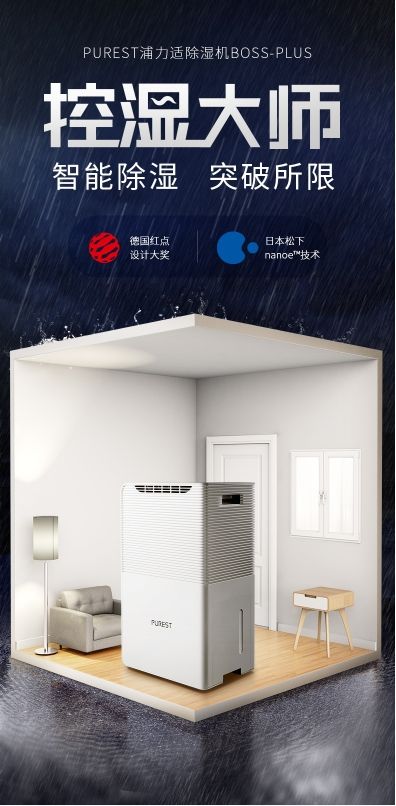 在除湿机热卖的型号Boss-plus和Prince-plus中,浦力适&松下强强联合,为打造健康家庭环境,浦力适搭载松下nanoe(纳诺怡)专利技术,解决潮湿问题的同时对环境空气有抑菌、防霉、除臭降低PM2.5的效果。