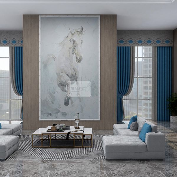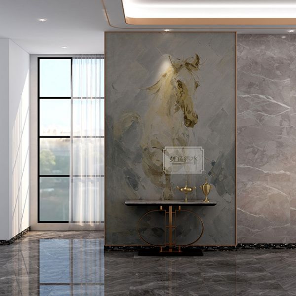 奔腾的骏马,似锦的前程,象征成功,象征自由,活跃在广阔秀美的山水之间,让人心旷神怡,意趣盎然。作为玄关背景,马到成功,是再合适不过了。
