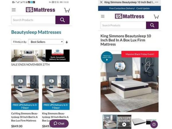 席梦思Beautysleep在亚马逊网站上的截图
