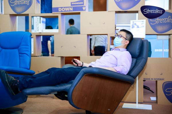 在Stressless展厅现场,我们躺卧在Stressless的沙发上,真切感受到了它的魅力所在。躺上去,可以延展至170°的角度。