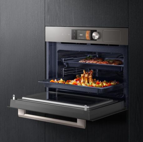 整体厨房和厨电一体化的概念在西方已发展近30年,国内消费者也受到嵌入式厨电理念的影响,尤其对注重生活品味的消费者而言,他们更加追求生活的精致感,因此,嵌入式蒸烤一体机就成为了他们优化厨房空间设计的不二之选。美的智能嵌入式微蒸烤一体机R5采用嵌入式机身和集成化结构,让它节省出原来三分之二的空间,大幅提升空间利用率。传统的台式机器放在厨房会增加空间拥挤感,这是由于技术等多重因素的限制,不得不通过增加体积来保证外观设计及精湛工艺。R5的嵌入式机身会让厨房空间在视觉上更为通透,并尽量多的创造收纳空间,各式厨电如洗碗机、料理机等都能在厨房中找到栖身之地。革命式纤薄内壁,相同体积下增加更多的炉腔容量,达到50L的理想大内腔,不仅使内腔的食物受热更均匀,不容易焦,而且可以轻松容纳大块食材,避免多次切割和多次烤制,十分省心。