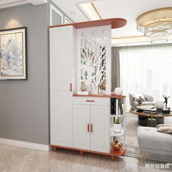 大门和客厅中间设计隔断,一来是可以起到遮挡作用,暴露隐私的尴尬。还有一点就是有一个缓冲,可以避免外面的风、气直接对客厅产生冲撞。