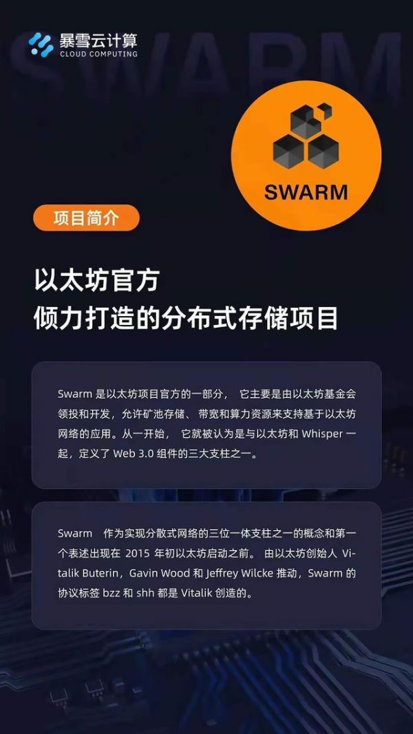 以分布技术为依托,为全国算力网络插上腾飞的翅膀快讯:近日,国家发展改革委、中央网信办、工业和信息化部、国家能源局联合印发了《全国一体化大数据中心协同创新体系算力枢纽实施方案》,明确提出布局全国算力网络国家枢纽节点,启动实施“东数西算”工程,构建国家算力网络体系。在当今时代,大数据作为未来世界发展必不可少的基石,可以说算力是腾飞的起点,是发展的重要依托。在发展的必要之下,以IPFS/Filecoin、Swarm/Bzz等技术为代表的分布式存储领域脱颖而出。以超前的理念,点对点,面对面将所有具有相同文件系统的计算设备连接在一起,对目前统领互联网的超文本传输协议(http访问协议)进行补充。目前,我们要把分布式技术作为核心技术自主创新的重要突破口,明确主攻方向,加大投入力度,着力攻克一批关键核心技术,加快推动分布式技术确保网络数据安全,积极利用可再生资源,建设绿色节能的数据中心。建设国家枢纽节点,实现一体化推进:提倡网络一体化,能源一体化,算力一体化,数据一体化,应用一体化。以更开放的心态建设数据共享、政企数据融合,在各个枢纽之间加强一体化联通调度,实现多云之间,云和数据中心之间,云和网络之间的资源联动,构建算力服务资源池。Filecoin的出现推动的进步就是建立了一个数据的标准化,让数据和数据之间不再存在孤岛,让数据交换通过统一的标准再无障碍。只有打通数据底层的交换,才能实现全国算力网络一体化。暴雪云计算作为IPFS研究链上的一环,一直致力于让人类数据永存,做未来数字世界的筑基者,愿意紧紧围绕“东数西算”工程,以技术做基石,为建设全国一体化算力网络国家枢纽节点添砖加瓦,为全国算力网络插上腾飞的翅膀。