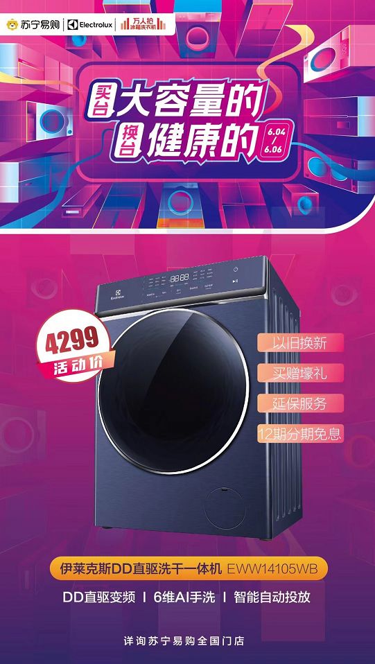 为了助力用户“新享事成”,伊莱克斯在冰洗万人抢活动中依然承诺不涨价,坚持逆势让利,并加码推出了多重福利,包括以旧换新、买赠壕礼、延保服务、12期分期免息,购入上述中高端机型再送一年内家电免费清洗保养一次。有需求的用户不妨前往苏宁易购全国门店咨询了解,买台大容量的,换台健康的!