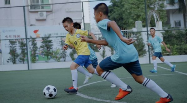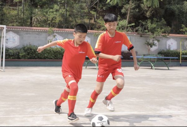 华帝希望小学和江华小学的足球少年,一起拍摄为国足打call的视频。