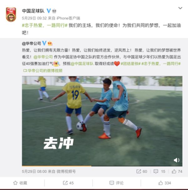 对于足球的热爱和强烈的国家荣誉感驱使着我们始终追随着国足的身影。在5月30日与关岛开赛前,一群普通孩子此起彼伏的加油声,在网络里撼动了无数球迷的心。 孩子们在烈日下的球场中肆意奔跑,脸上的汗水和笑意也同样感染着代表国家出征的男足,在收到孩子们助威的视频后,国足在官方微博中积极回应和孩子们立下赛前最美好的约定:“为我们共同的梦想,一起加油!”