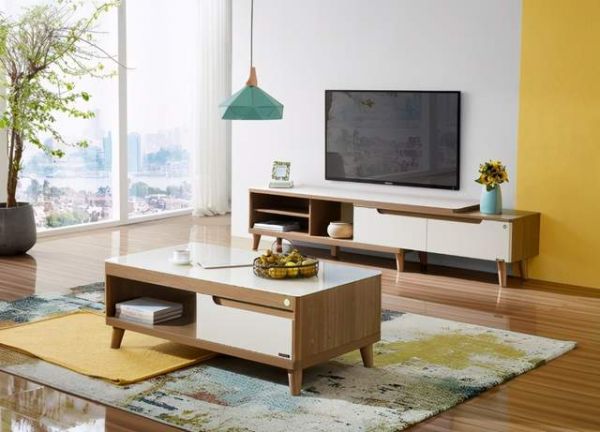 这款茶几电视柜组合,造型简洁大方,经典木色双拼搭配,清新自然,可轻松融入新中式、现代、北欧等多种家装风格,万能百搭。台面采用钢化玻璃,冷热不惧,一擦即净。而且电视柜也可灵活伸缩,适配多种户型。
