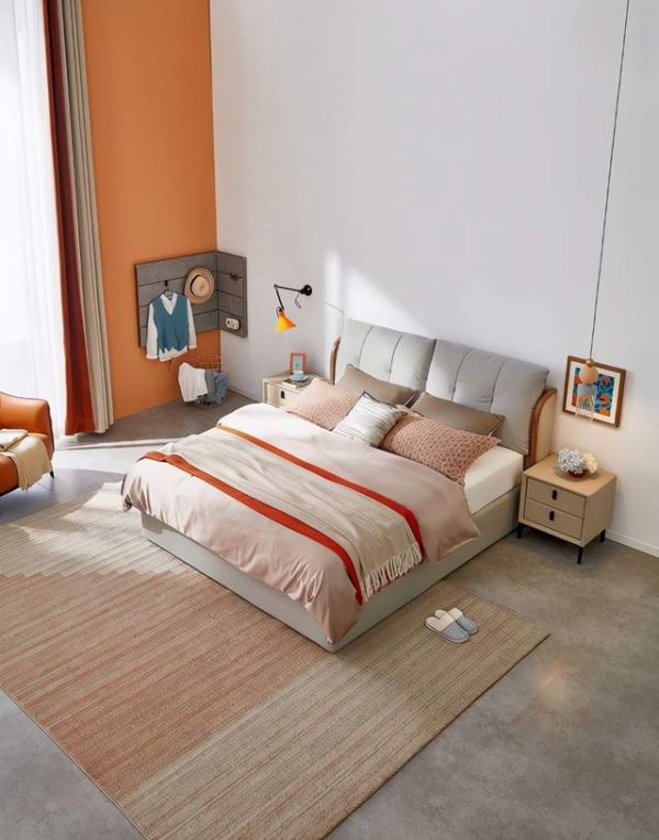 这款皮软床以淡雅米色为主色调,温馨典雅。床屏包覆头层牛皮,触感细腻,透气亲肤,靠背采用8段分区设计,设计简约有质感,可适用于现代、轻奢、意式、北欧等多种家居风格。