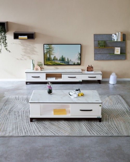茶几和电视柜是客厅空间必不可少的家具,全友120709茶几电视柜组合,台面可选大理石款也可选岩板款,耐磨耐划耐高温,石材纹理自然,高级感满满。电视柜采用可伸缩设计,能根据客厅大小自由调整,满足各种户型需求。
