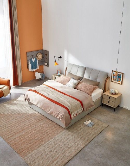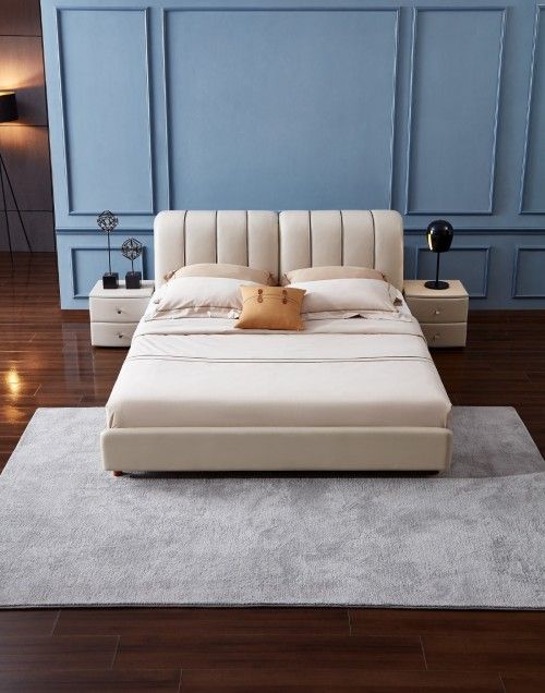 这款皮软床以淡雅米色为主色调,温馨典雅。床屏包覆头层牛皮,触感细腻,透气亲肤,靠背采用8段分区设计,设计简约有质感,可适用于现代、轻奢、意式、北欧等多种家居风格。