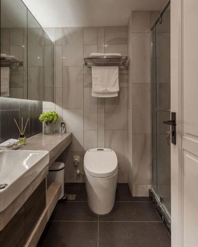 1、洗手台外移:很多人都觉得卫生间小,想要在一个小小的卫生间做一个洗漱区、淋浴区和马桶区是一件特别困难的事情,那么这个时候,我们就可以把洗手台做一个外移的设计,每次和家人在使用卫生间的时候,都不会出现争抢的问题,而且还会更加的干净清爽。