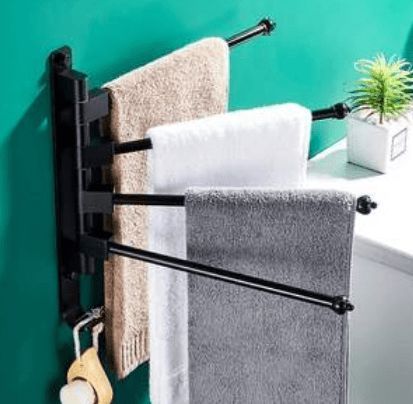 4、旋转毛巾架:家里的毛巾太多,用传统的毛巾架不怎么方便,而且还很容易把各种各样的毛巾堆积在一起,造成一些交叉感染,使用毛巾的时候就没那么健康和卫生,因此,我建议大家丢掉传统的毛巾架,改用这款旋转毛巾架来收纳家里的毛巾,它的灵动性更加完美,能够根据需要做出调节,180°自由旋转,想要怎么放毛巾都可以。