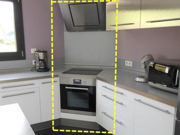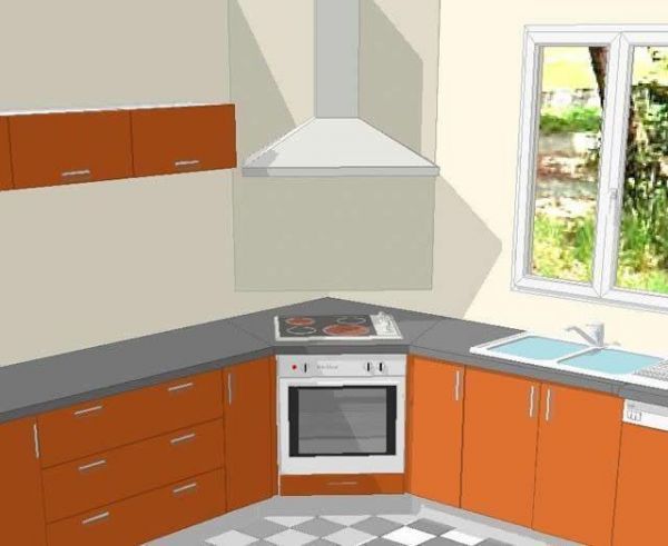 可我朋友就比较聪明了,她家厨房的灶具和油烟机全都装在拐角了!如下图: